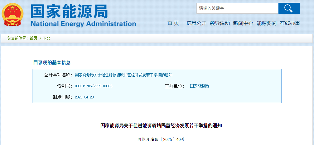 4月28日,国家能源局印发《关于促进能源领域民营经济发展若干举措的通知》,引导民营经济在推进能源绿色低碳转型和建设新型能源体系中做大做优做强。