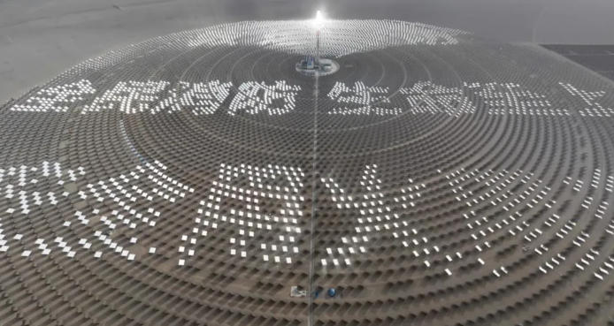 敦煌戈壁现巨型消防标语,首航高科100MW光热电站万镜舞动“全民消防”