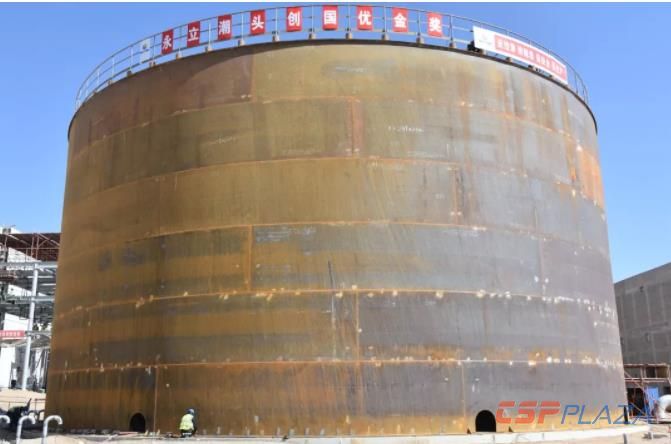 本项目设计1个冷盐罐和1个热盐罐,其中冷盐储罐材质为碳钢,罐体直径为29米,高度为14米,罐体壁板共分6层,熔盐罐在现场装焊完成。