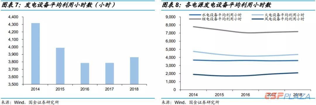 2014年以来,供电量与售电量差额保持扩大趋势,电力供需逐步宽松,2018年达到3149亿千瓦时,电力存在轻微过剩。虽然电源设备新增产能增速的下降及用电量增速的提升带来产能利用率的小幅增加,全国发电设备平均利用小时数在2018年提高至3,862小时,同比提高73小时;但从历史区间来看,发电设备平均利用小时数仍然偏低。