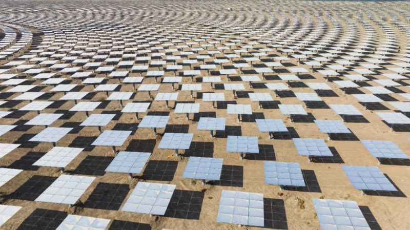 据此前报道,该项目位于新疆维吾尔自治区博尔塔拉蒙古自治州博乐市达勒特镇,占地面积204万平方米,由甘肃省安装建设集团有限公司、恒基能脉新能源科技有限公司联合体PC总承包建设。项目采用熔盐塔式技术路线,配备13402面定日镜,将53万平方米的光照集中起来,通过熔盐储能系统,使夜间、阴雨天也能源源不断产生绿色电能。