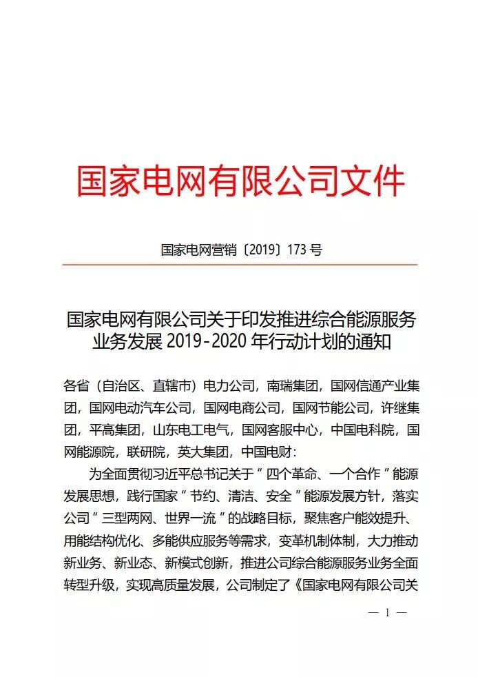 CSPPLAZA光热发电网讯:近日,国家电网有限公司正式印发《推进综合能源服务业务发展2019-2020年行动计划》(简称“《行动计划》”)。