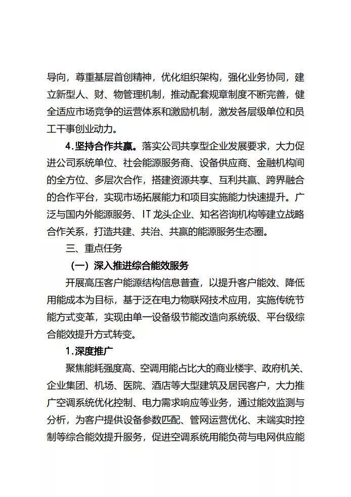 根据《行动计划》,国家电网未来两年将紧紧抓住新一轮能源技术革命、信息通讯技术革命和产业融合发展的新机遇,践行公司“三型两网、世界一流”战略目标,坚持以电为中心、多能互济,以推进能源互联网、智慧用能为发展方向,构建开放、合作、共赢的能源服务平台,将公司建设成为综合能源服务领域主要践行者、深度参与者、重要推动者和示范引领者。