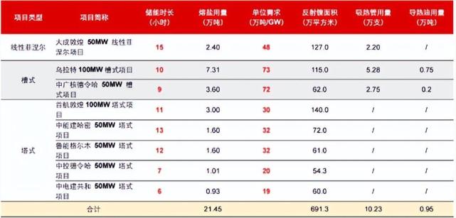 而在熔盐中,主流熔盐为由60%硝酸钾和40%硝酸钠组成的二元混合硝酸盐。据专业机构推算,去年年底并网了8个光热发电,当每个光热电站的储能时长为10小时的时候,塔式光热电站对储能熔盐的总需求量为28万吨/GW。