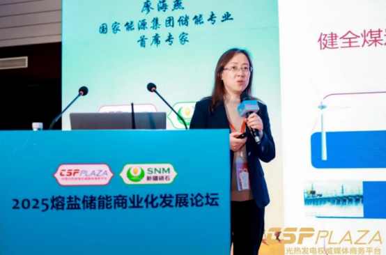在2025熔盐储能商业化发展论坛上,国家能源集团储能专业首席专家廖海燕作《高温熔盐储热技术的应用实践》主题报告,详细介绍了龙山电厂、宿州热电、荆州热电三大熔盐储热改造项目的技术特点、设计效果和收益模式,并深入分析了新型熔盐储热技术的研发进展