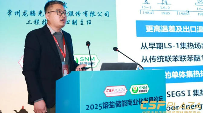 2025年熔盐储能商业化发展论坛现场,常州龙腾光热科技股份有限公司(以下简称:龙腾光热)工程技术中心副主任朱斌现场作了《RT86熔盐大槽示范系统关键装备技术成果及应用前景》主题报告,系统性披露RT86熔盐大槽凭借核心装备的全方位创新,以“大