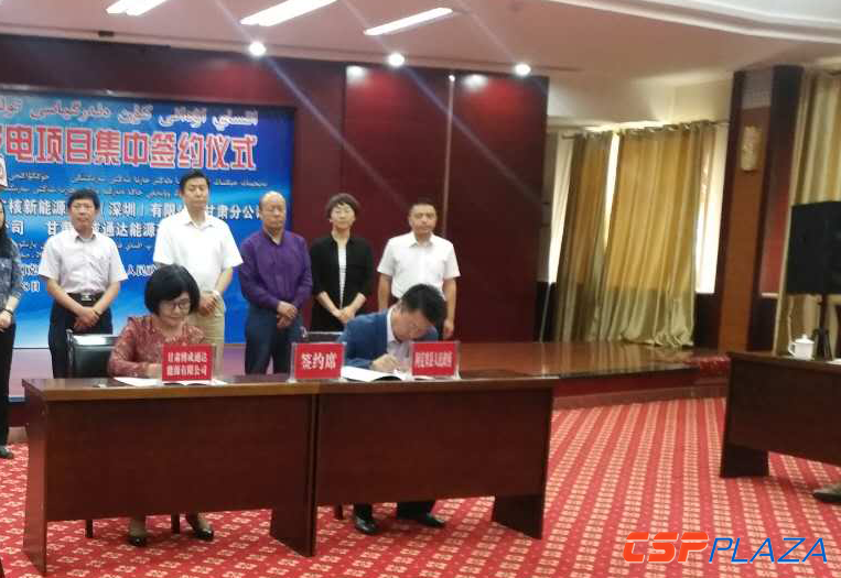 CSPPLAZA光热发电网讯:9月8日,值阿克塞县四十里戈壁太阳能热发电产业园(简称产业园)规划评审会召开之际,甘肃博成通达能源有限公司(简称博成通达)与阿克塞县政府正式签约,将在阿克塞开发100MW槽式光热发电项目。