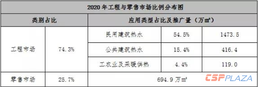 2020年,全国太阳能热利用集热系统总销量2703.7万㎡,可实现节煤7641万吨,相当于节电2123千瓦时,减排CO2计16402万吨。至2020年末,累计保有量53789万平方米,节煤80508万吨,减排CO2计172823万吨。