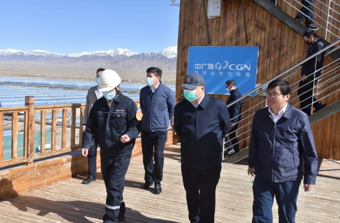 5月20日,由江苏省国资委一级巡视员王宁生带队,江苏交控、徐矿集团、沿海集团、汇鸿集团负责人近30人组成的调研组到中广核德令哈50兆瓦光热发电示范项目(简称“德令哈光热项目”)调研。