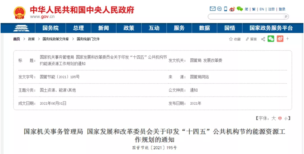 国家机关事务管理局国家发展和改革委员会关于印发“十四五”公共机构节约能源资源工作规划的通知