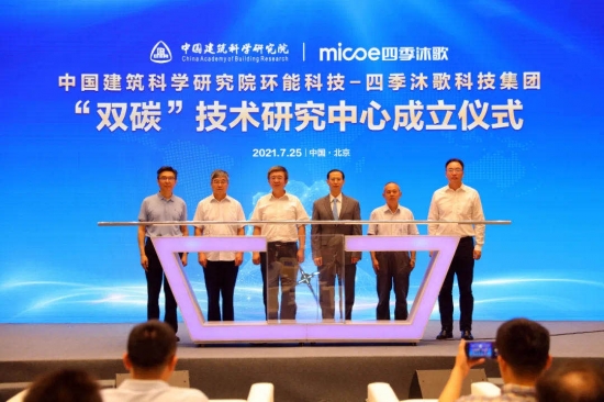 7月25日,中国建筑科学研究院环能科技-四季沐歌科技集团“双碳”技术研究中心成立仪式暨四季沐歌北京运营中心启动仪式在北京举行。本次仪式汇集了数十位政府部门与行业协(学)会领导、中国建筑科学研究院环能科技、四季沐歌集团以及战略合作伙伴和各界嘉宾,在共襄“双碳”技术研究中心成立的同时,围绕“3060”目标下经济社会低碳转型以及科研机构及相关企业的责任与践行进行了深入的阐述与解析。