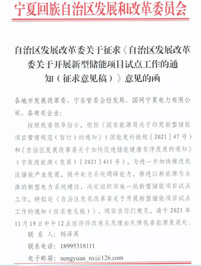 自治区发展改革委关于开展新型储能项目试点工作的通知(征求意见稿)