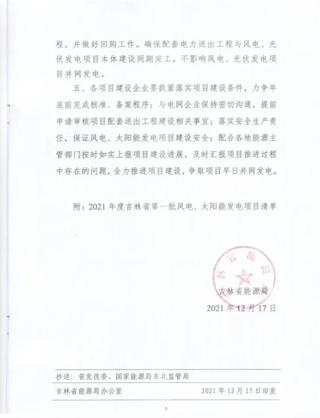 CSPPLAZA光热发电网讯:12月17日,吉林省能源局下发《关于下达2021年度第一批风电、太阳能发电项目建设规模有关事项的通知》(以下简称通知)。