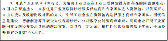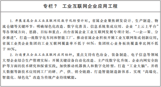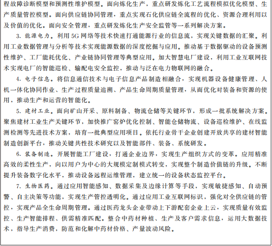 支持省内工业龙头企业、科技创新企业、科研院所不断深化与工业互联网产业联盟、中国信息通信协会等组织的交流合作,积极参与工业互联网基础共性、工厂内外网、边缘计算、标识解析、工业大数据、工业APP、安全能力评估等关键技术、产品、管理标准的研制、测试。依托我省石油化工、建材、有色冶金、电力等支柱产业,积极开展工业互联网垂直行业应用标准研制。