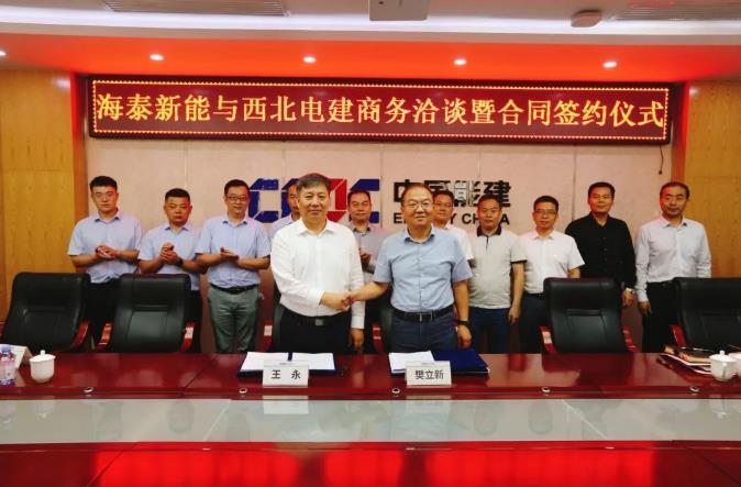 9月2日上午,西北电建党委书记、董事长樊立新与唐山海泰新能科技股份有限公司(以下简称“海泰新能”)董事长王永进行座谈,双方围绕新疆吐鲁番光热+光伏一体化项目合作进行了友好交流,并达成了广泛共识,签署了合作协议。