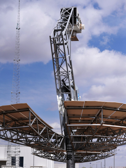 上图为三峡乌兰察布“源网荷储”技术研发试验基地内的碟式斯特林光热发电机,具有布局灵活、发电效率高的特性。