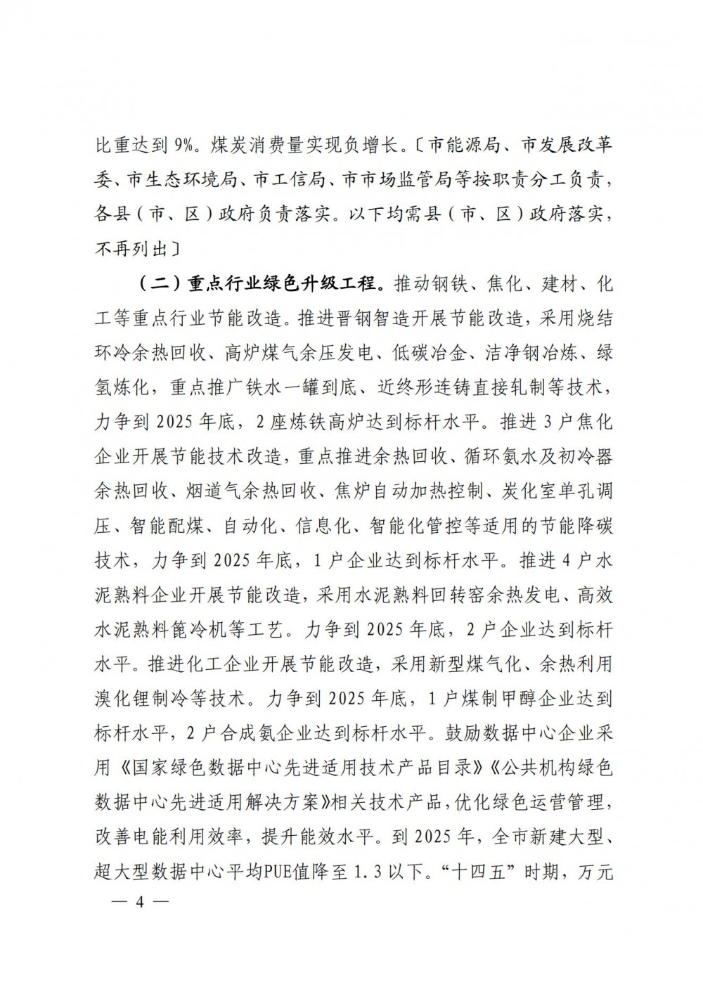 近日,晋城市人民政府印发《晋城市“十四五”节能减排实施方案》,要求全力实施节能减排重点工程,推动全市能源利用效率大幅提升、主要污染物排放总量持续减少、生态环境质量持续改善,确保到2025年,全市单位地区生产总值能源消耗比2020年下降15.5%,全面增强经济发展绿色动能。