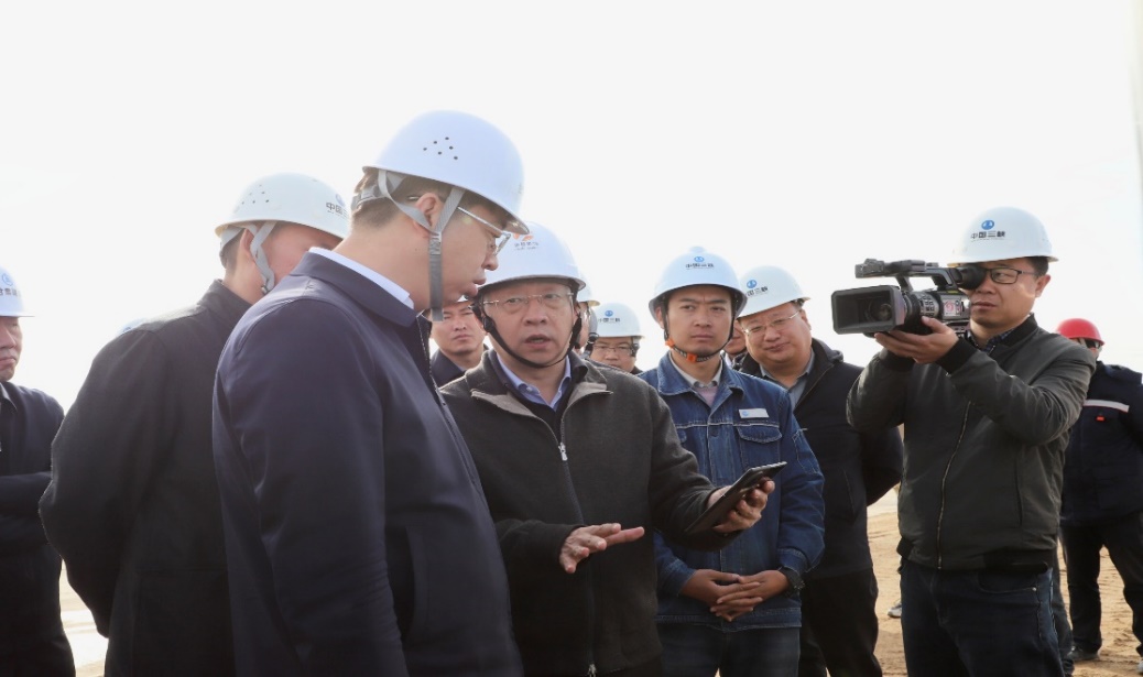 10月17日上午,陈松一行首先来到“三峡恒基能脉瓜州70万千万光热+”项目风电、光伏项目建设工地,依次会见了瓜州项目总承包牵头方葛洲坝电力生产部总经理许江博、风机基础道路分包单位陕西盛基负责人郭庆洲等。