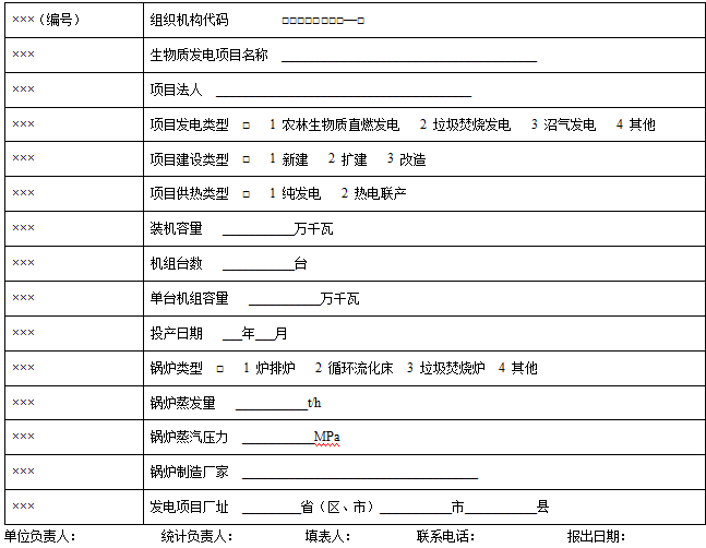 说明:1、统计范围:本企业当年投产的所有生物质发电项目。