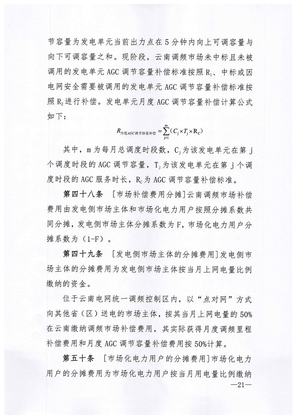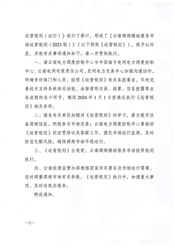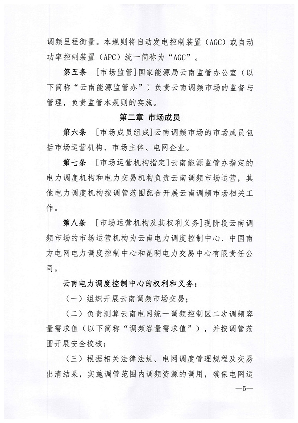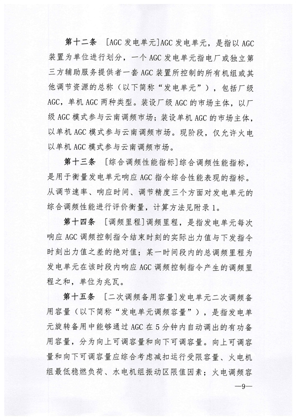 12月13日,国家能源局云南监管办公室印发《云南调频辅助服务市场运营规则(2023版)》。其中提到,位于云南电网统一调频控制区范围内的发电侧市场主体,包括省级及以上电力调度机构直接调度的并网发电厂、地市级电力调度机构调度的容量为10兆瓦及以上火电、水电、风电、光伏发电、光热发电、自备电厂等。