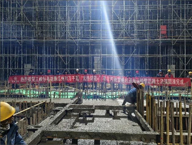 瓜州项目由40万千瓦风电、20万千瓦光伏以及10万千瓦光热发电构成,本次实现并网的为风电及光伏部分。该项目光热部分建设100MW塔式光热电站,12月6日晚上12点整,瓜州70万千瓦“光热储能+”项目汽轮机基座经过15个小时的连续浇筑,顺利浇筑完工。目前,光热项目总体进度符合计划,计划2024年投产发电。