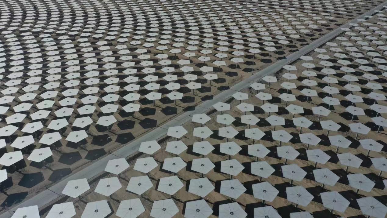一排排光伏板整齐排布,一面面定日镜逐日以待。“光热+光伏”的新能源商业模式一方面可以缓解纯光伏发电的波动性和间歇性,实现并网友好、储热连续、发电稳定;另一方面以光伏发电的收益补贴光热发电的高成本,可以实现整体平价上网。项目建成后将对加快构建酒泉新能源增长极、助推酒泉乃至全省经济高质量发展具有重要意义。