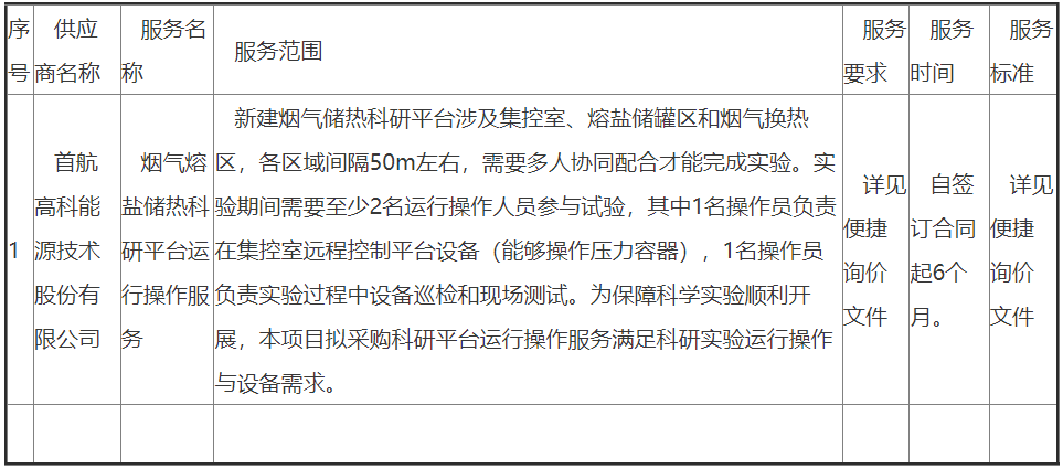 怀柔实验室烟气熔盐储热科研平台运行操作服务成交公告