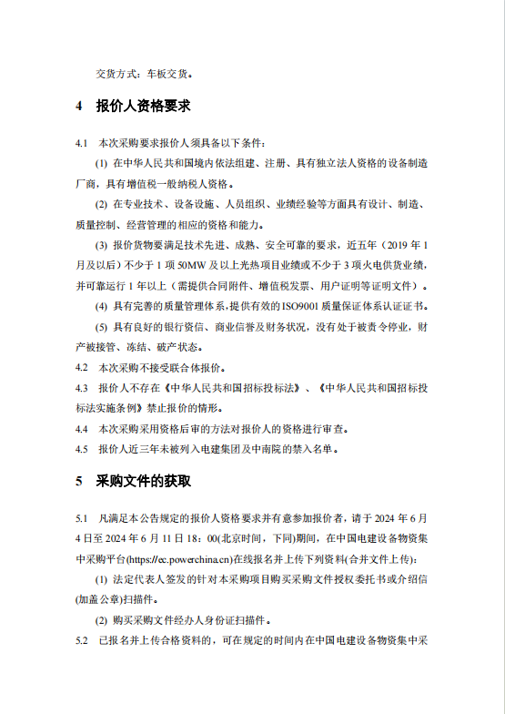 1、报价货物要满足技术先进、成熟、安全可靠的要求,近五年(2019年1月及以后)不少于1项50MW及以上光热项目业绩或不少于3项火电供货业绩,并可靠运行1年以上(需提供合同附件、增值税发票、用户证明等证明文件)。
