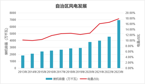 其中,内蒙古自治区电力总装机、火电装机、风电装机规模均达到全国首位。