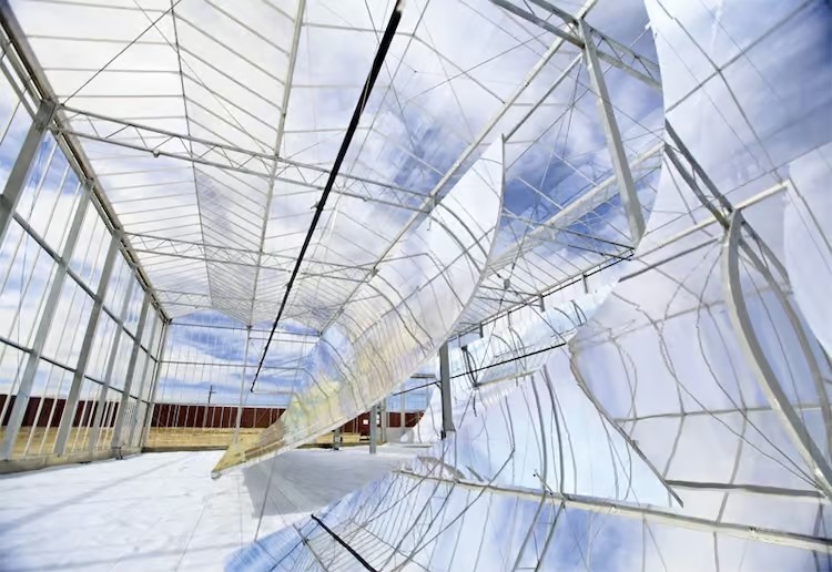 GMTS项目将在温室内部使用槽式反射镜聚焦太阳光到一根输送液态熔盐的集热管上,以捕获来自太阳的能量。同时,该项目将展示GlassPoint的高级技术发展成果,如反拱形聚合物膜、高性能铌镜和三元液态盐等。