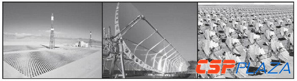 塔式:塔式系统的聚光主体为环状排布的定日镜群,每面定日镜均加装跟踪聚焦系统,可根据日照方位调整镜面的方位角和仰角,将阳光聚焦到位于中央高塔上的集热器,并驱动热机做功发电。塔式系统的特点是聚光焦距长、散射较为严重,因而聚光效率较低,但圆柱形集热器单位体积的热损失率较低,故集热效率较高。
