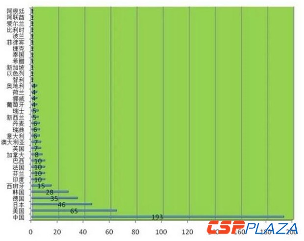 中国(中国大陆及香港、澳门、台湾)有协鑫(集团)控股有限公司、新疆金风科技股份有限公司、晶龙实业集团有限公司、天合光能有限公司、阿特斯阳光电力科技有限公司等193家企业进入“500强”榜单,比去年(168家)增加27家,占38.6%,居首位;