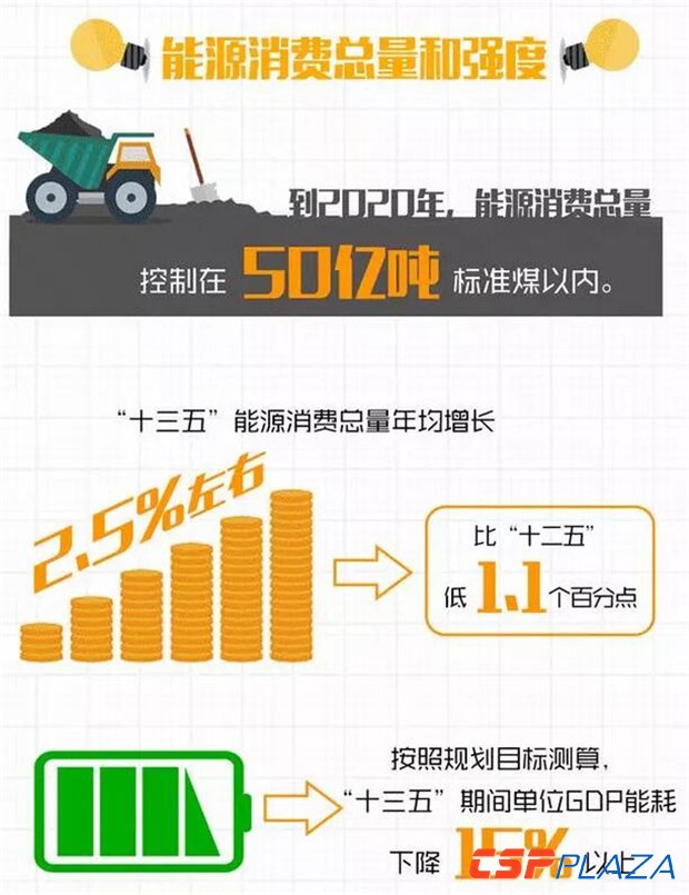 1月5日上午,能源局召开新闻发布会,发布《能源发展“十三五”规划》及《可再生能源发展“十三五”规划》(以下简称“规划”)。规划中提出“到2020年把能源消费总量控制在50亿吨标准煤以内”,这与国民经济和社会发展规划《纲要》保持一致。从年均增速看,“十三五”能源消费总量年均增长2.5%左右,比“十二五”低1.1个百分点,符合新常态下能源消费变化新趋势。规划中具体还有哪些内容呢?下面一图带你读懂能源发展十三五规划。