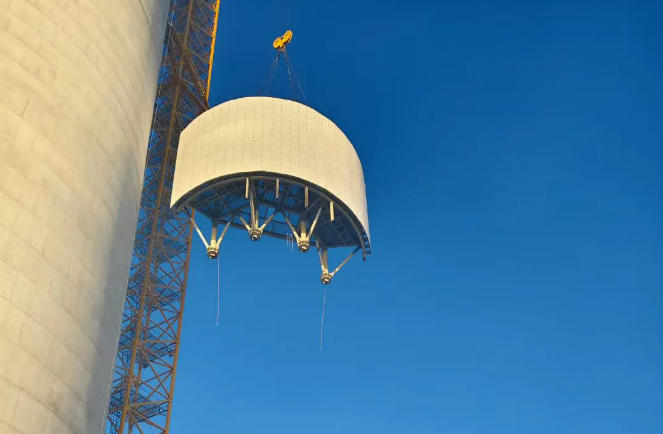 中广核吉西基地大安100MW光热项目吸热器第一榀钢架顺利吊装就位